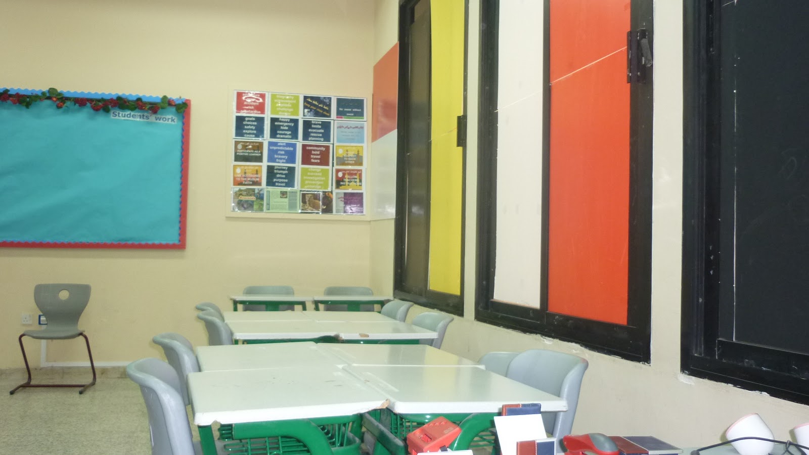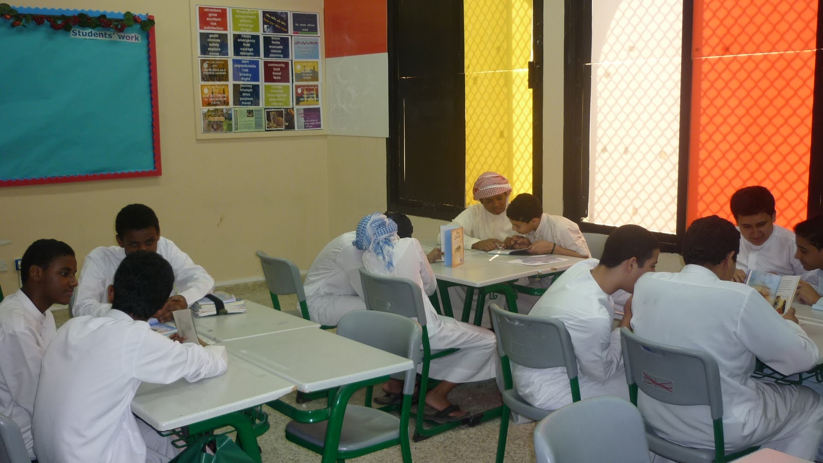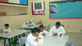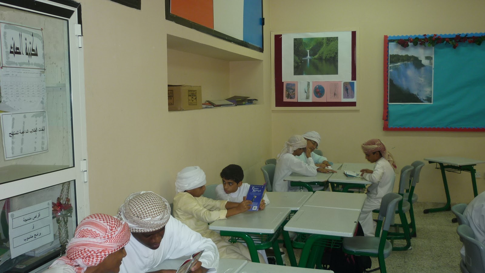 تتميز البيئة الصفية في مدرسة عبدالجليل الفهيم باحتوائها على المستلزمات الضرورية للعملية التعليمية التعلمية: فهنالك "Data Show" مع شاشته الممغنطة. و هنالك أيضا مكتبة صغيرة توفر امكانية لإثراء مختلف الجوانب المعرفية الضرورية لكل طالب في هذه المرحلة. تلك بعض الصور لهذه البيئة و لبعض الطلاب و هم يمارسون القراءة داخل الصف.