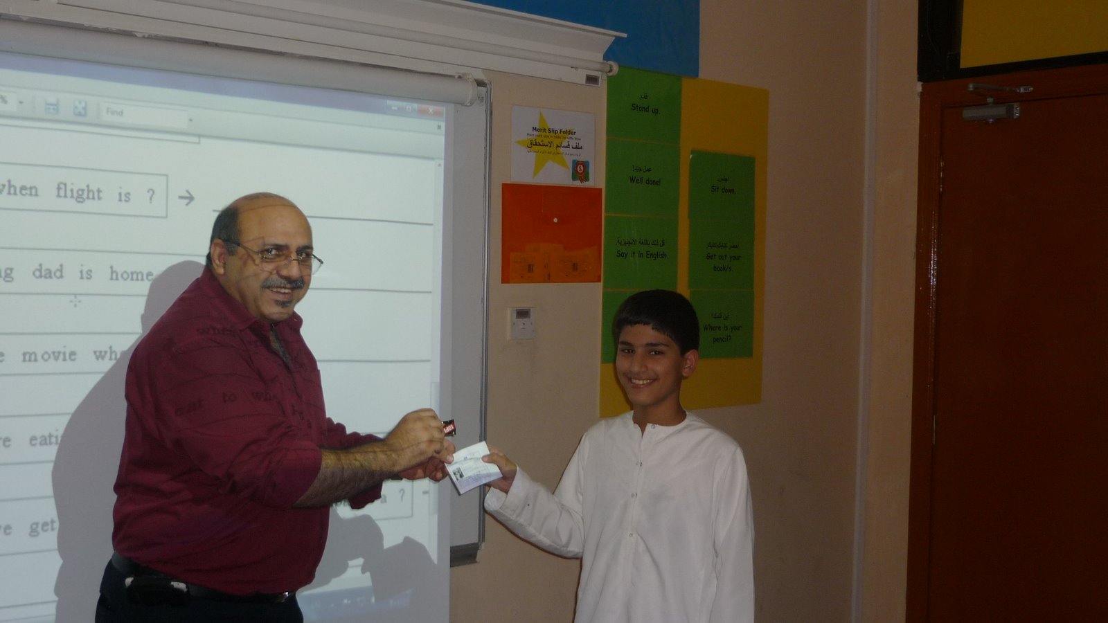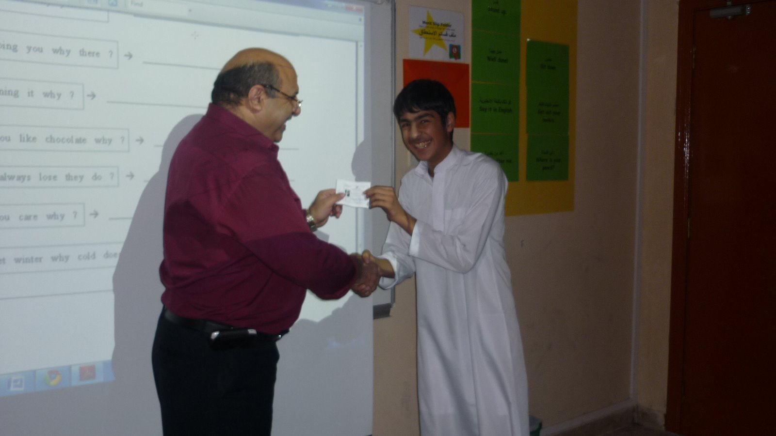 تشجيعا للطلاب على المشاركة الفاعلة في الحصة الدرسية، تم توزيع قسائم على الطلبة ،الذين كانت مساهماتهم متميزة لهذا اليوم. و سيتم السحب في نهاية الاسبوع على هذه القسائم و ذلك من أجل توزيع الجوائز التشجيعية على هؤلاء المشاركين.